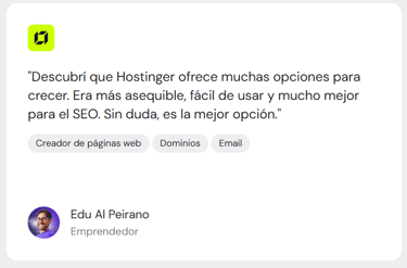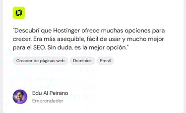 Accede a la tecnología de punta de Hostinger con un 20% de descuento y obtén tu dominio gratis el primer año. La mejor relación calidad-precio para que tu presupuesto rinda más